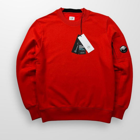 CP Company Diagonal Raised Fleece Crew Neck Sweatshirt In Orange