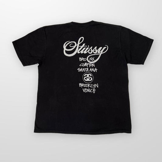 Stussy Crewneck T-Shirt In Black W/ White Print